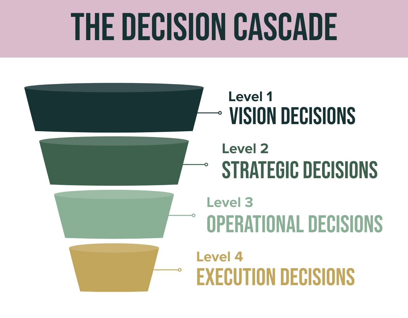 This isn’t about trust. It’s about structure. The Tool: The Decision CascadeThe Decision Cascade is a four-level framework to right-size your decision-making role. The goal is for you work your way up the levels until you are only making the decisions that only you can make and for decisions to work their way down the levels to be made by the appropriate owners in the organization. Level 1: Vision DecisionsThe highest level calls that define who you are and where you’re going, like mission, long-term vision, brand promise, core values and purpose. Owner: Founder or CEO, with leadership input. Escalation Trigger: These decisions can’t escalate. They are yours to own. Constant revision usually means you’re seeking certainty where you need conviction. Get clear on the Why behind your direction and then make it crystal clear to your team. Level Check: If it impacts the next one to five years, not the next quarter, consider it Vision-level. Honor this space; it’s the part of your role no one else can fill. Level 2: Strategic DecisionsDirectional calls about where to focus resources and why, like growth priorities, pricing strategy, product line expansion, hiring plans and partnership choices. Owner: The leadership team, with your thought partnership (informed by their recommendations). Escalation Trigger: Escalate only when trade-offs touch multiple departments or meaningfully shift the growth trajectory. Level Check: If the decision changes your allocation of people, money or attention for more than a quarter, think of it as Strategic. This is where you belong most often: steering, not signing off. Level 3: Operational DecisionsProcess-oriented choices that determine how work gets done, like launch timelines, cross-functional coordination, process design, vendor contracts or workload balancing. Owner: Department leads or functional managers. Escalation Trigger: Escalate only when the decision impacts capacity, cost structure or inter-team dependencies. Level Check: If it affects how the system runs but not what the system is aiming for, it’s an Operational call. If you’re still the default approver here, you’re clogging throughput. Delegate to your department heads. Level 4: Execution DecisionsReal-time, tactical calls that keep daily work moving, like what tool to use, how to message a customer, which vendor to pick. These are short-cycle, reversible and low-risk. Owner: Team members closest to the work. Escalation Trigger: Only escalate if the decision has material impact on budget, brand or the timeline of a strategic initiative. Level Check: If the impact is short-term and the cost of a wrong call is minimal, it belongs here. If it still lands on your desk, you’re being asked to play the roll of traffic controller, not leader. Decline to make the decision and instead support the appropriate owner in understanding it’s theirs and how to approach it. The FixStart by mapping your Decision Cascade: how decisions enter, move through and get resolved in your business. The goal is to create flow so decisions are made where they belong, and there are no dams forming at the door of your office or in your inbox.